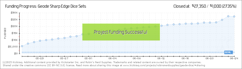 We are Funded!Thank you everyone for supporting the Geode Dice Kickstarter! As a small business, pre-orders are the only way that we are able to keep making new styles and colors. I will continue to sound like a broken record and say thank you... (Read More)