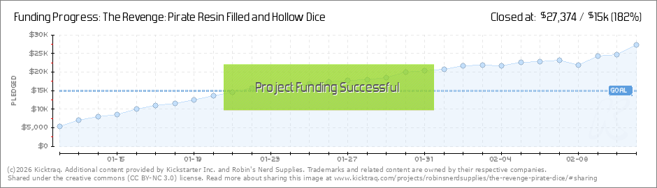 Thank you for all the support! We are halfway to being fully funded. If you ever have any questions, please message us via Kickstarter or Sales@RobinsNerdSupplies.com. Also, today is the last day to enter to win a set of Igneous Resin Dice via our... (Read More)
