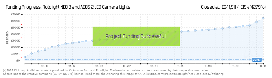 Hello to all our new backers, Thank you so much from the Rotolight team for choosing to back our brand new LED camera lights, the NEO 3 and AEOS 2, and helping us smash our first goal in 39 minutes! They really are some of the most powerful around... (Read More)