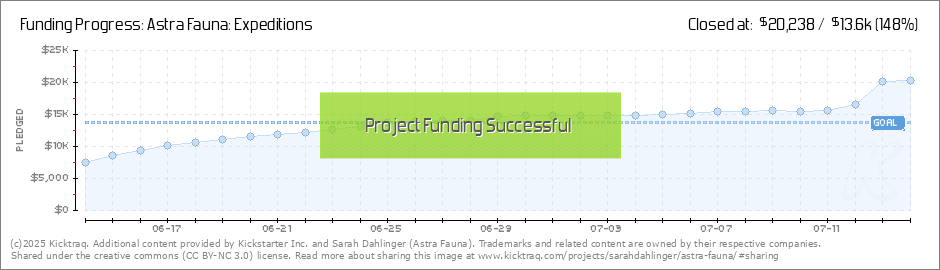IN LESS THAN 3 HOURS! I am honored! I have received the "Project we love" badge. It was always a hope of mine and a dream of mine, but one I didn't know if I'd ever achieve. "Congratulations! We’ve selected Astra Fauna: Expeditions as a... (Read More)