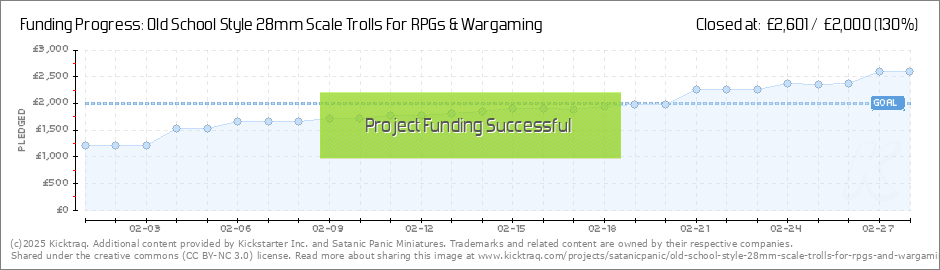 Good morning all, If we hit £2000 target before the 21st of February, I will add a set of the (very) limited edition Drunken Great Gnolls for every pledge level. These have been seen on eBay at ridiculous prices,and I have a few left in storage. So,... (Read More)