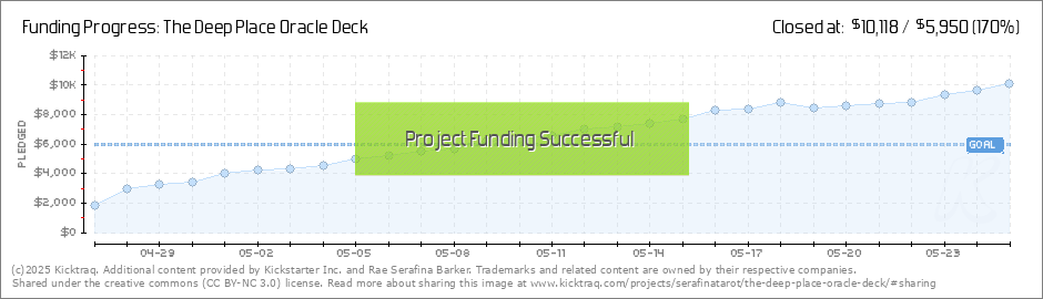 Hello, everyone! I wanted to send a quick update to let you all know that we made it to the finish line! The Deep Place Oracle deck is fully funded + will be making its way into the world soon! Thank you all *so* much for being part this adventure... (Read More)