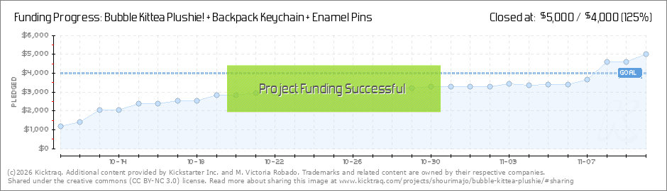 Hi everyone! Thank you for your support for the Bubble Kittea plushie campaign! 🐱 We are about a third of the goal in, and I hope we'll see more backers after people meet him at NYCC! 😹 If you're attending, make sure to stop by booth 1959 on... (Read More)
