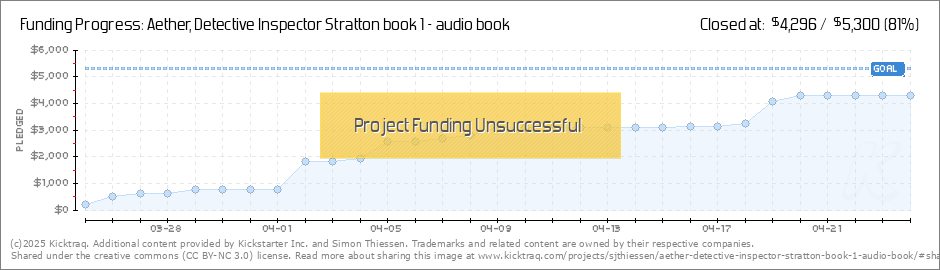 Hi Backers Thank you for backing my project. It has been exciting watching support grow, with the project now over 50% backed and just over two weeks still to go. I'm hard at work making sure we hit the target and will be promoting the campaign at... (Read More)