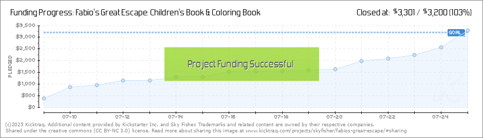 Good morning! Just a quick note to say THANK YOU to those who have backed the Fabio's Great Escape campaign so far. We're currently $3 away from 50% funded with 5 days left to go. The campaign ends at 10pm on Friday, July 25th. Kickstarter is... (Read More)
