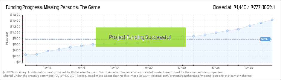 What a wonderful thing to wake up to! It's official! We have reached 100% of our goal which means that Missing Persons: The Game is officially BACKED and considered a successful Kickstarter campaign and we still have over a week to go! Now it is... (Read More)