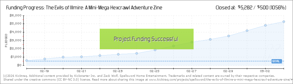 Yessss! More cultists! More fear! Mwahahahaha! We hit our $1400 stretch goal. Ready for more cool stuff? If we hit $1600, we'll add in a new thing. $1600 Stretch Goal - Adventurer's Guide to Illmire If you're like me, you're a fan of player handouts!... (Read More)