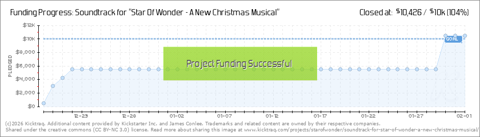 We met our goal! Thank You so much for all of your support. We are now hard at work on the arrangements we will need for the recording sessions. We can't wait to share the album this summer and the 2022 version of "Star of Wonder" this Christmas!!... (Read More)