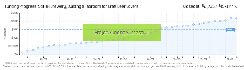 We reached our half-way point! 50% funded- Woot Woot! Thank you to all that have shown their support for Still Hill Brewery. Keep sharing the link and getting your friends and family involved. Let's get funded! (Read More)