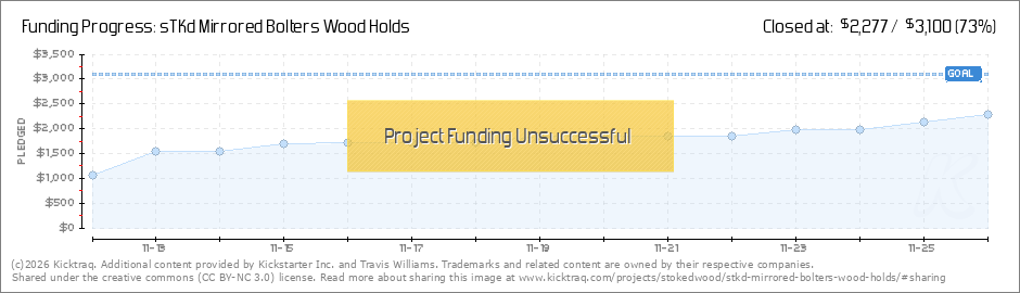 Help your backers reach your daily goals and help others see how you're doing. It's easy, with Kicktraq Mini.Here are a few quick snippits of code you can use to embed your personalized widget on your website, in your blog, and even on your favorite forum.
