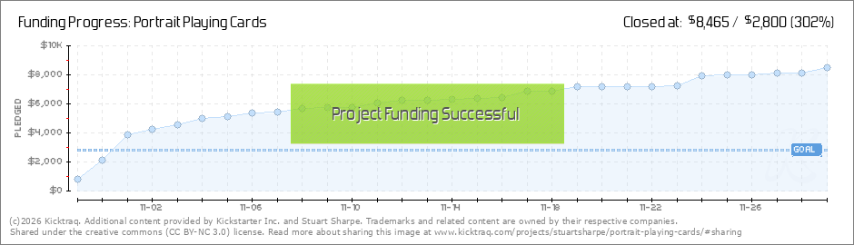 USPCC printing unlocks at $7500!! What does that mean? If we receive pledges totalling $7500.00, then the United States Playing Card Company will be contracted to print the cards. They are one of just a few premium card printers and their product... (Read More)