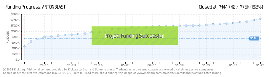 WE'RE FULLY FUNDED! 🔨💥💣 ANTONBLAST is coming and it's all thanks to you! We couldn't have possibly expected this overwhelming outpouring of support. We are so immensely humbled. From the bottom of our hearts, thank you. Best, Tony (Read More)
