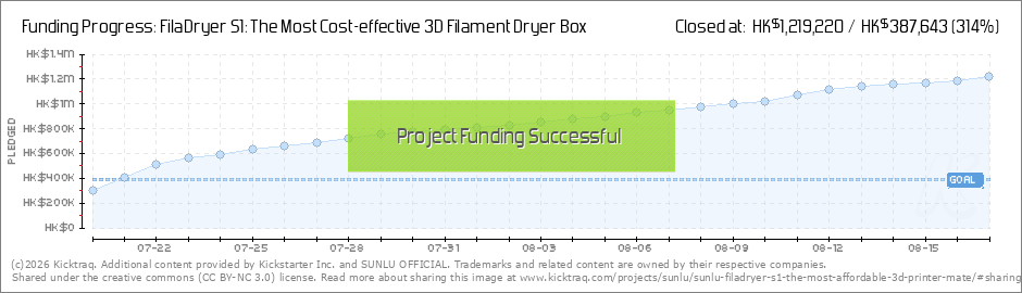 Hi our dear backers, Thank you very much for your trust and support to SUNLU FilaDryer S1, because of your support, we can break the USD$10000 goal within half an hour. Everyone in our team is very excited about it. (Read More)