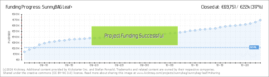 Woohoooo!You are awesome. We reached our funding goal of € 22,000 within 3 days. Thank you so much for supporting us. New USB-C stretch goal at 35kYour feedback was very clear. The new SunnyBAG LEAF+ needs a USB-C connector to be equipped for... (Read More)