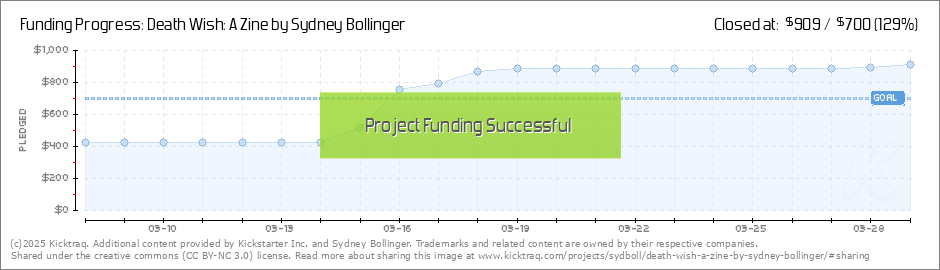 Death Wish is a zine by Sydney Bollinger. The zine features original prose and poetry themed around life's end.