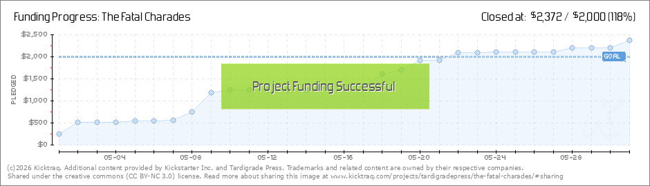 We did it, friends. The Fatal Charades campaign ends in just hours and we wanted to offer a final thank you to all our backers and invite you to join us for a closeout stream this Tuesday, March 31st at 8 pm EST on the Tardigrade Press youtube... (Read More)