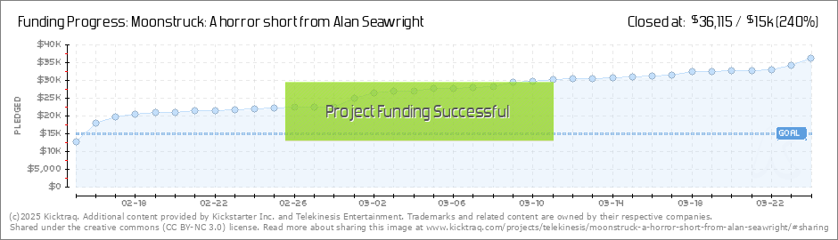 Friends! Countrymen/women/nonbinaries! Moonfolk! I can't express how overwhelmed I am at the level of support, and how quickly you all jumped in to help fund this little movie we're all making! As of 3:38am this morning, we are officially: FUNDED... (Read More)
