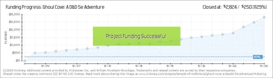 Hello everyone! First, a huge thank you to everyone who has backed Ghoul Cove. We just reached the first stretch goal, so we'll include additional encounters and magic items. I've also added an in-between reward tier for backers who want most of the... (Read More)