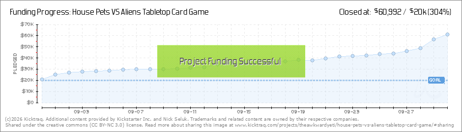 House Pets vs Aliens (vs Robots vs Plants), is about to end! We just hit the $50,000 stretch goal, which means bonuses for everyone who pledged to receive a copy of the game, including the backer exclusive Heart and Brain cards! We now have less than... (Read More)