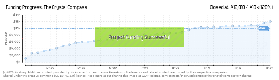 With 138 Backers, The Crystal Compass is FUNDED! I can't be more thankful to everyone who supported us! We couldn't have done this without your hard work and dedication to seeing this project come to fruition and for that we are deeply moved. We... (Read More)