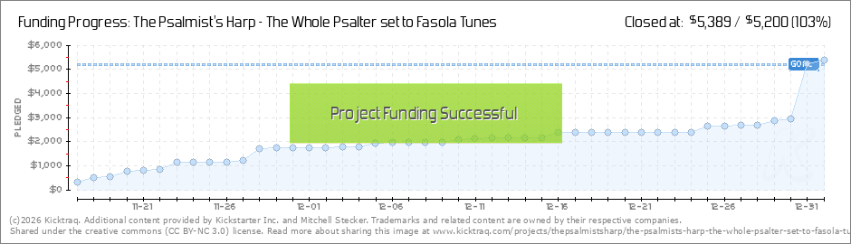 Many thanks to all of you who have already pledged their support support to the project! We are 9% of the way to the total funding goal. Additionally, some exciting news: Kickstarter has chosen The Psalmist's Harp as one of their "Projects We Love"... (Read More)