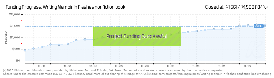 Hi everyone, We're so happy to be closing in on reaching our funding goal for Writing Memoir in Flashes. Thank you to everyone who has backed so far and for those of you who are following this Kickstarter! While the Kickstarter is going, we're also... (Read More)