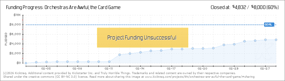 You get cards! Thanks to everyone who has backed us so far. In appreciation, here are some of the cards you will find in Orchestras Are Awful. Enjoy the PTSD! It's the Vivaldi one that goes dum duh da da... (Read More)