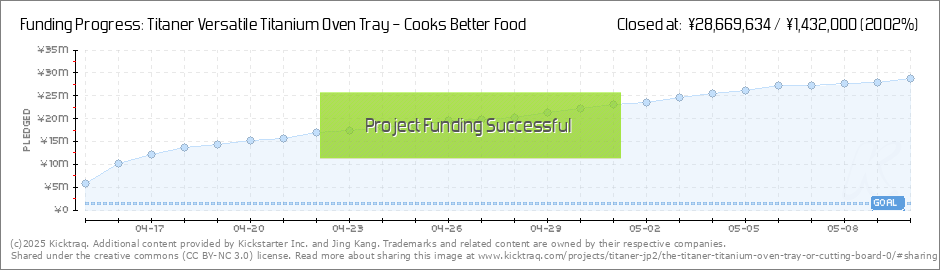 Dear Backers, Titaner Versatile Titanium Oven Tray campaign has officially come to a successful close!We’re thrilled to announce that we’ve raised over $197,210, with 811 backers joining us on this journey. 🙏From concept to production... (Read More)