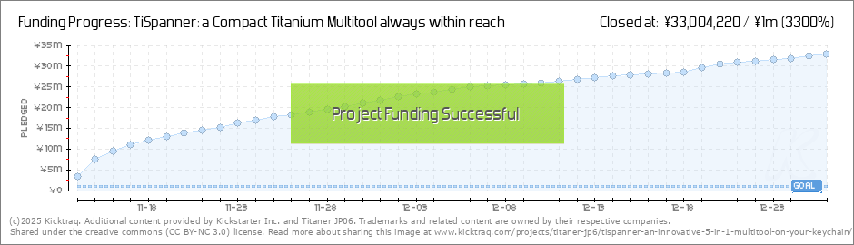 Dear Tispanner backers, We are excited to tell you that Tispanner, a Compact Titanium Multitool always within reach, has reached our funding goal in less than 2 hours! Heartfelt thanks for your support and reliance. We have surpassed the... (Read More)