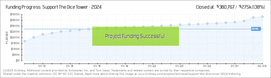 So I'm going to combine the $375K and $380K stretch goals into one. We'll do some more RPG stuff, AND we'll make it into a podcast. That's because our new $380K stretch goal will be the return or Sam Healey - coming back to the Dice Tower part... (Read More)