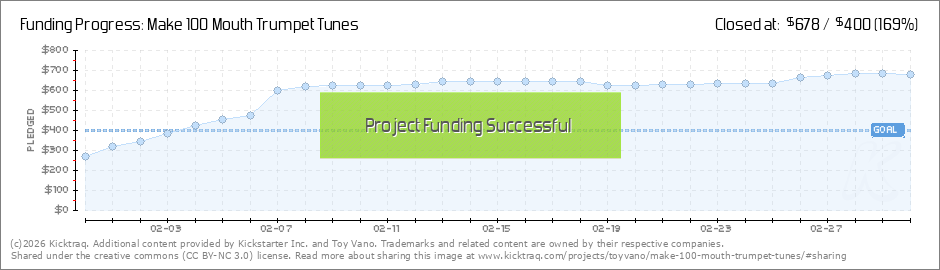 Help your backers reach your daily goals and help others see how you're doing. It's easy, with Kicktraq Mini.Here are a few quick snippits of code you can use to embed your personalized widget on your website, in your blog, and even on your favorite forum.