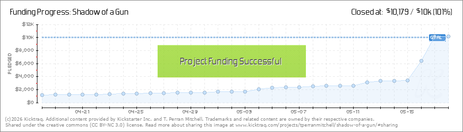 New Add-on reward! It's a signed copy of the script. For an extra $10 you can get a signed copy of the script to Shadow of a Gun. The script will be printed on premium heavy weight paper and then sign and number by me, T. Perran Mitchell. I’m only... (Read More)