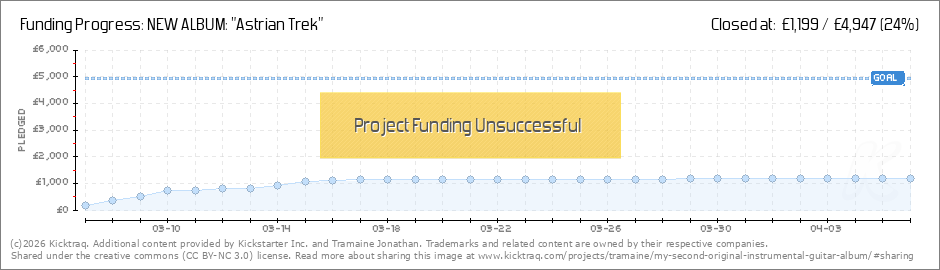 New Tier Available! Hey everyone! A new tier has been added which will allow you to back this project for only £3, and still get some awesome goodies. For this pledge, you will get the 'Astrian Trek' single, along with the tabs, and 3 custom Dunlop... (Read More)