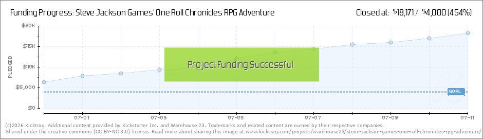 Wow! When we launch a Kickstarter campaign, we often have an idea of roughly how well it will perform. (It's an educated guess, but a guess nonetheless.) As of this morning, your support for One Roll Chronicles has met the number I had deep in m... (Read More)