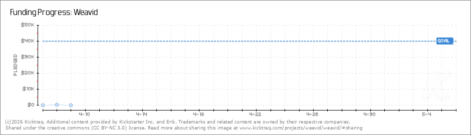Help your backers reach your daily goals and help others see how you're doing. It's easy, with Kicktraq Mini.Here are a few quick snippits of code you can use to embed your personalized widget on your website, in your blog, and even on your favorite forum.