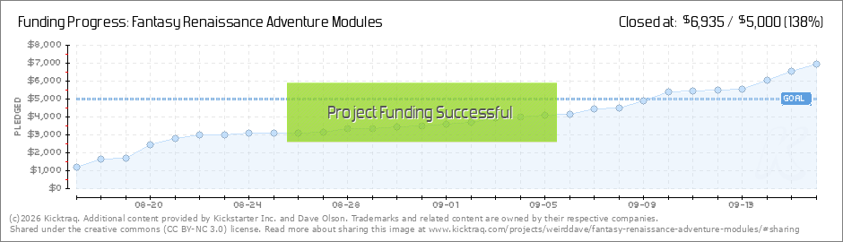 And with just shy of a week left to go, the Fantasy Renaissance Adventure Module Kickstarter is FUNDED! I have few words, so I'm just going to put this short video here that encapsulates my excitement and gratitude towards all of you. In all ways,... (Read More)