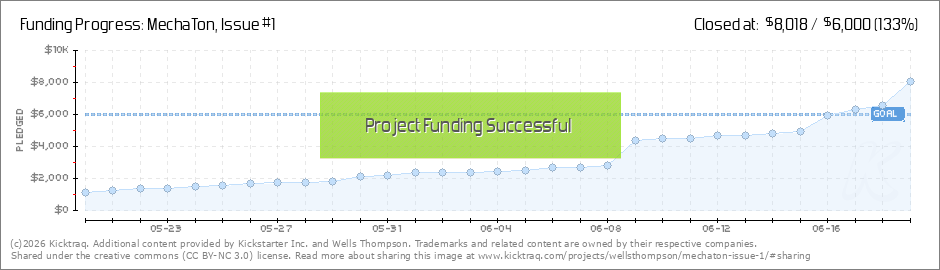 Hey Mech-heads, (Not sure how I feel about that greeting, but I'm gonna try it out anyway.) We are half way through the campaign and 40% funded. Those numbers are actually really good for us! We've reached a bunch of milestones that indicate we will... (Read More)