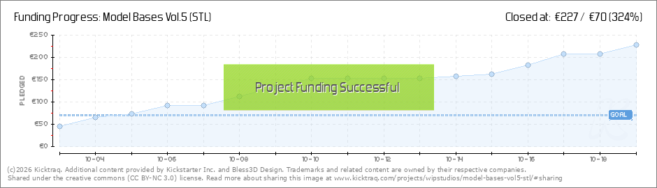 Thank you everyone for helping us reaching our first goal. The project is now funded and you will receive the files you chose at the end of the campaign. Now for a new challenge: Bonus Packs, let's see where we can get. See you soon, ciao! (Read More)