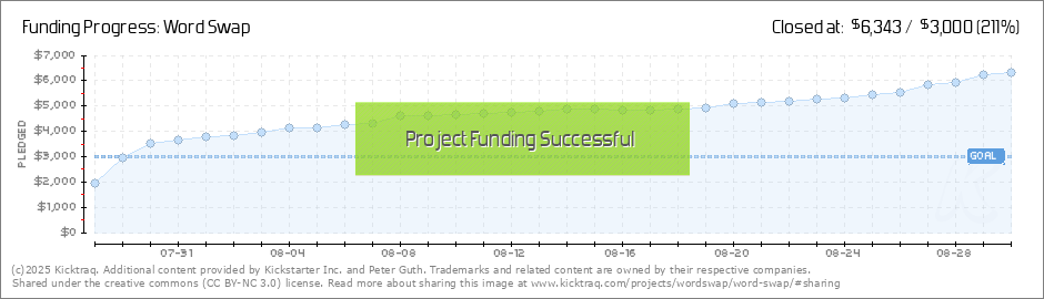 THANK YOU! We have just passed $5000!!! AND hit 100 backers!!! This. Is. Huge. I am so overwhelmed by the support this project has received! Than you all so much for backing, sharing, and supporting Word Swap! With this new milestone, we have... (Read More)