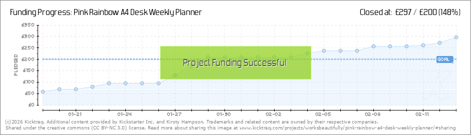 Hello my lovely pledgers! First of all, thank you for believing in my ideas and pledging to get one of my A4 weekly desk pad. We're £5 away from being 50% funded, which is super exciting! Please use the story template below to share on your... (Read More)