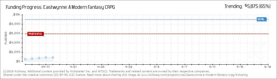 Help your backers reach your daily goals and help others see how you're doing. It's easy, with Kicktraq Mini.Here are a few quick snippits of code you can use to embed your personalized widget on your website, in your blog, and even on your favorite forum.