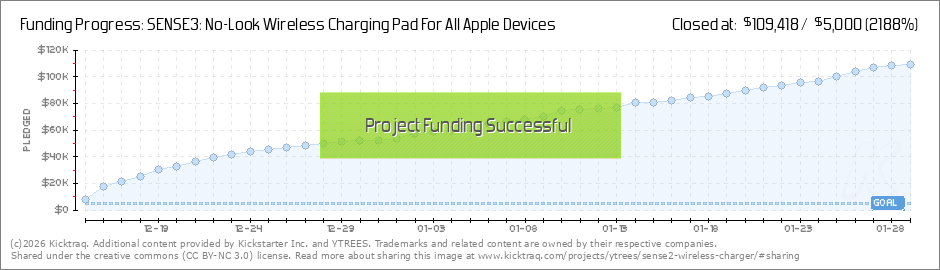 Dear Backers, Thanks for your support! We are so excited to announce that YTREES SENSE3 has reached its $5,000 Funding Goal within 4 Hours! This groundbreaking No-Look Wireless Charging Pad + 10,000 mAh Power Bank is the outcome of over 3 years of... (Read More)