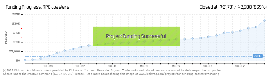 Help your backers reach your daily goals and help others see how you're doing. It's easy, with Kicktraq Mini.Here are a few quick snippits of code you can use to embed your personalized widget on your website, in your blog, and even on your favorite forum.