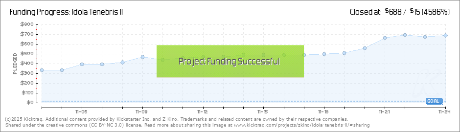 Help your backers reach your daily goals and help others see how you're doing. It's easy, with Kicktraq Mini.Here are a few quick snippits of code you can use to embed your personalized widget on your website, in your blog, and even on your favorite forum.