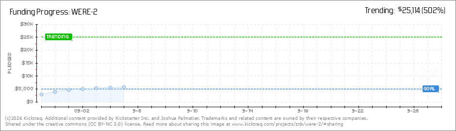 WERE-2 Is Now FUNDED!!!The WERE-2 Kickstarter has reached its funding goal after less than four days, thanks to the help of all of you backers! This is amazing! Time to celebrate! Also time to shoot for some spectacular Stretch Goals, including free... (Read More)